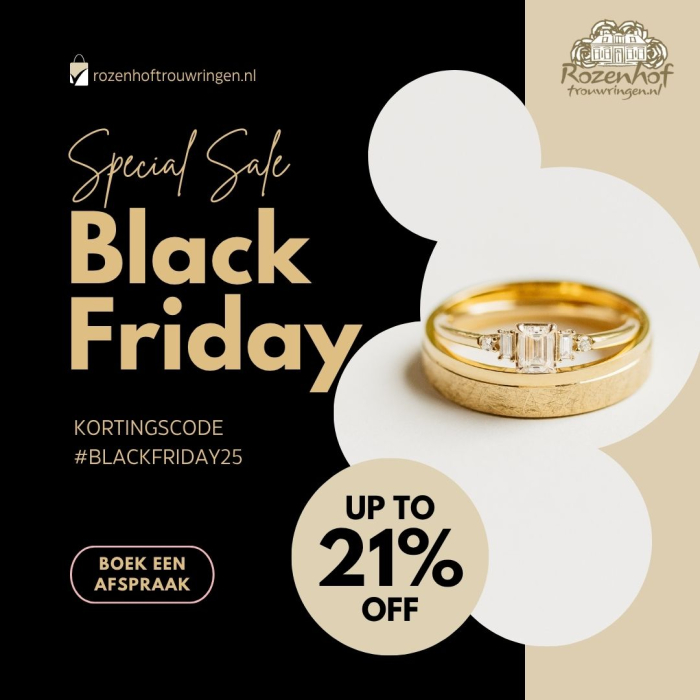Black Friday korting bij Rozenhof Trouwringen voor bruidsparen